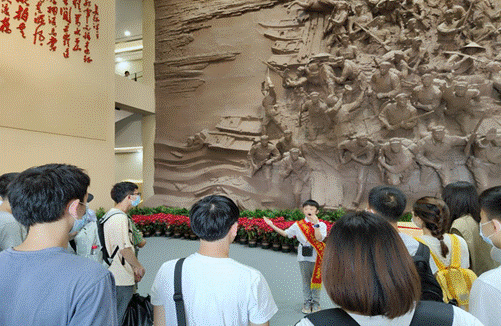 聆听志愿者讲解红军事迹