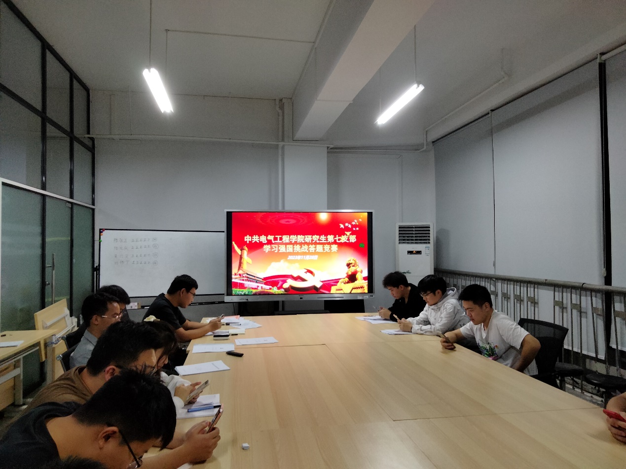 11月28日,广西大学电气工程学院研究生第七党支部组织了一场别开生面的学习强国挑战答题竞赛活动,支部全体党员参与活动。此次活动旨在深入学习贯彻党的二十大精神,推动主题教育走深走实,同时充分调动支部党员运用“学习强国”学习平台的积极性和主动性,推动构建“学习奋进型”的党支部。