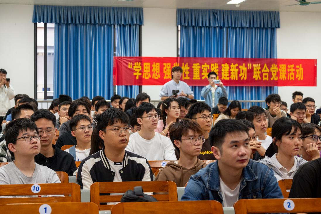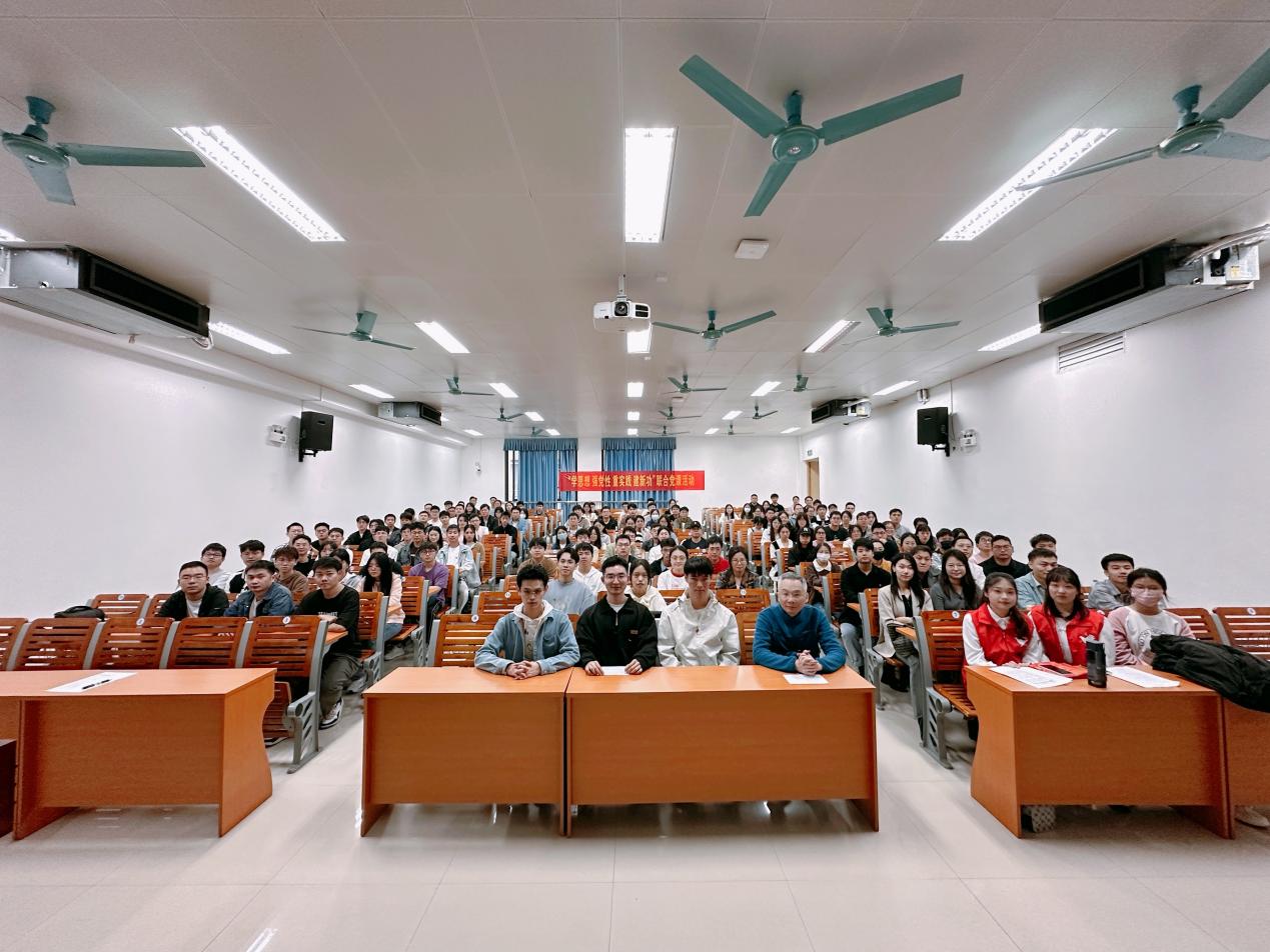 为巩固学习贯彻习近平新时代中国特色社会主义思想主题教育成果,用习近平新时代中国特色社会主义思想凝心铸魂,切实加强党支部的思想建设,2023年12月12日下午,广西大学电气工程学院研究生第一党支部联合学院研究生第三党支部,研究生第五党支部,研究生第八党支部(以下分别简称“我院研一支部,研三支部,研五支部,研八支部”)以及马克思主义学院研究生第三党支部(以下简称“马院研三支部”)在第六教学楼601室开展“学思想、强党性、重实践、建新功”主题教育宣讲会。宣讲会由我院研一支部王伟欢同志主持,马克思主义学院宣讲队成员李宇涵和蒙佳慧同志作为主讲人,两院五支部师生党员共百余人参加。